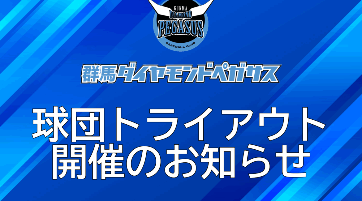 プロ野球独立リーグ・ルートインBCリーグ(Baseball Challenge League)の群馬ダイヤモンドペガサスでは、下記のとおり球団トライアウトを開催することが決定しましたのでお知らせいたします。